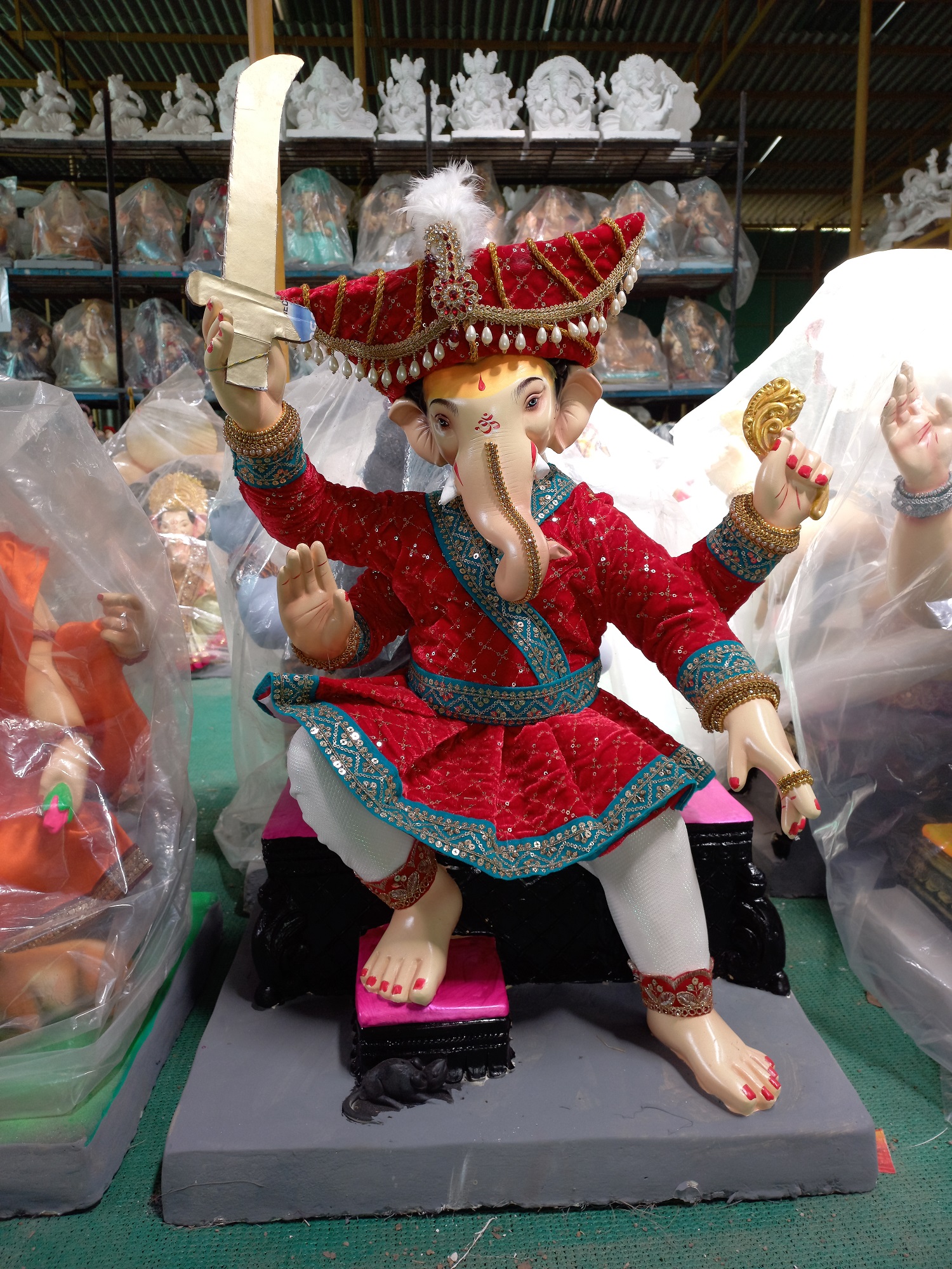 At Shreeram Kala Kendra we make pre decorated ‘Ganapati Murti’s which are decorated with jewelries and designer clothing accessories by our specialized artists.